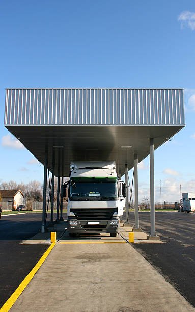 Balança para veículos de grande porte, utilizada para verificar o peso máximo permitido para o transporte nas rodovias.